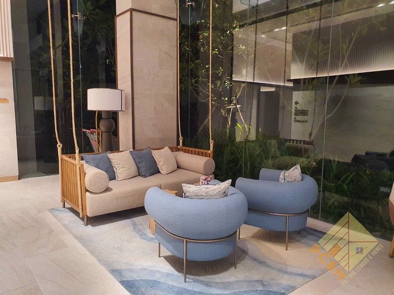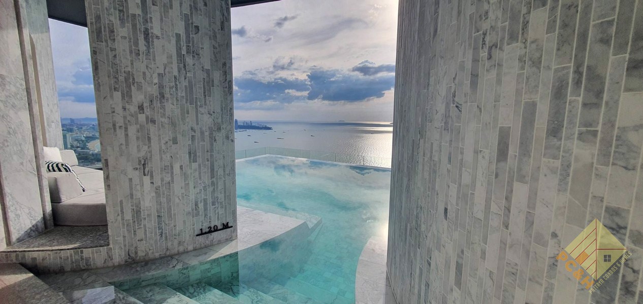 The facilities are actually located mainly on the top floors of Arom Wongamat with the 53rd, 54th, and 55th floors hosting a large 35-meter-long infinity, lap pool. There are a number of relaxation zones, as well as many sky jacuzzis, a very novel feature indeed! The 55th floor is actually home to a sky lounge and restaurant. The fitness room is located towards the beachfront and is on the 2nd floor of the facilities building. Along with this there are also 2 cinema rooms, 2 yoga rooms and even a golf simulator room as well. Also, at the ground level, near the beachfront, you will find a further, large communal pool.