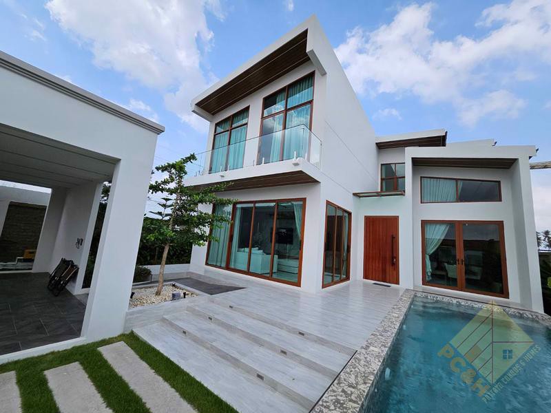 This house is on a land plot of 114 TW (456 sq.m) and has a private swimming pool and car parking.