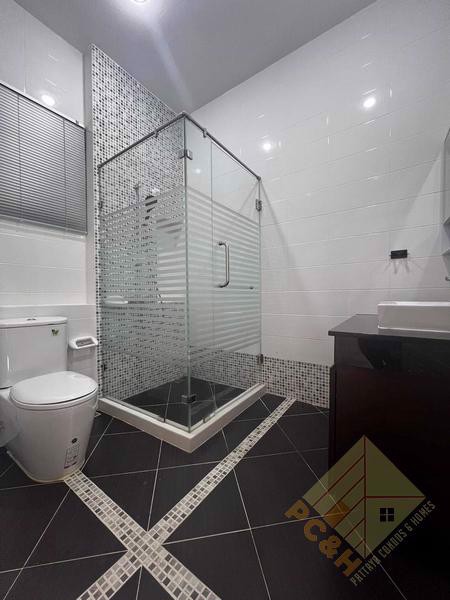 The exterior has a private pool with a total of 60 TW (240 sq.m) of land. Baan Dusit also has a playground, tennis course and attentive 24 hour security guards.