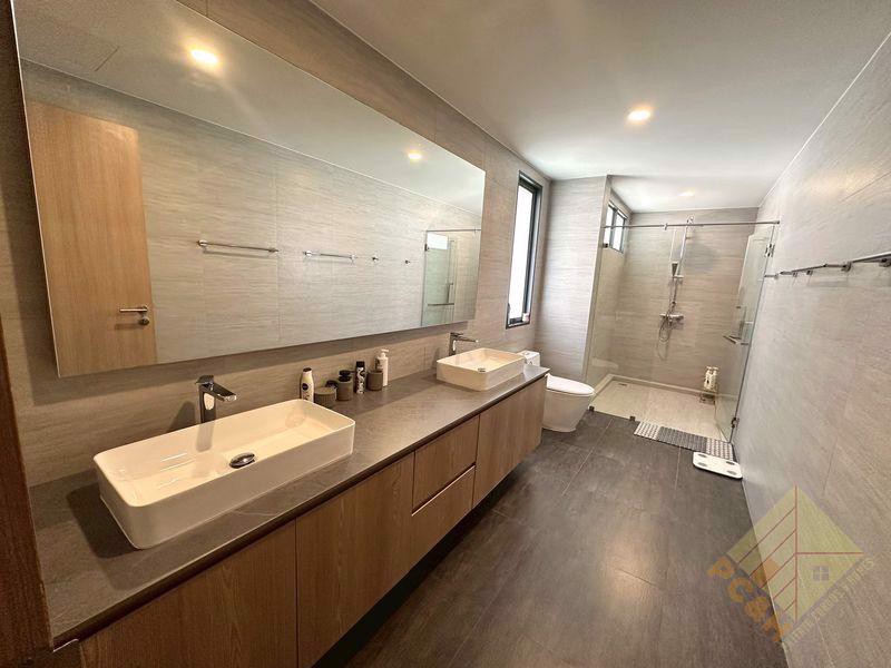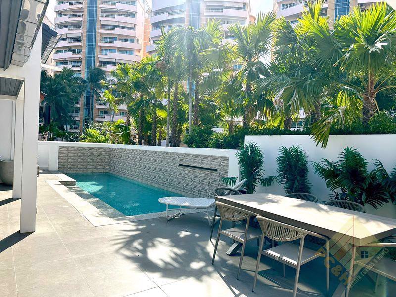 This 2-storey house that has 3 bedrooms, 4 bathrooms around 350 sq.m of living space, and a built-in European kitchen. This house comes fully furnished.