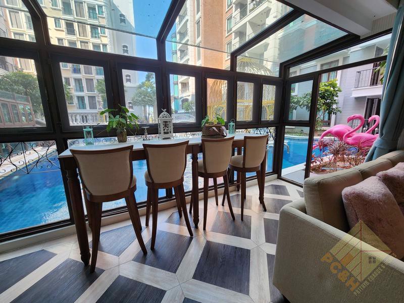 Espana Condo Resort is a resort style condo and comes with a massive lagoon style swimming pool that meanders through the project. There are lots of features including a Christopher Columbus ship with a wooden sun lounger deck. There are 2 clubhouses in this development which provide tons of facilities.