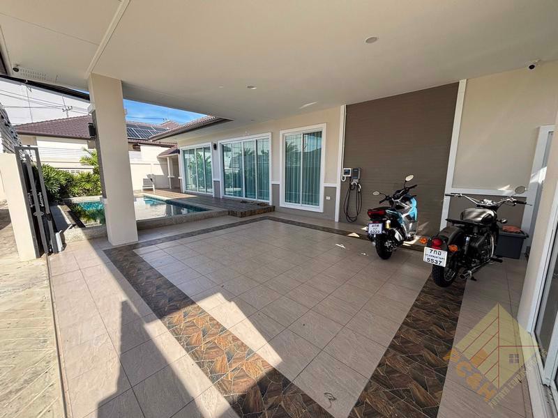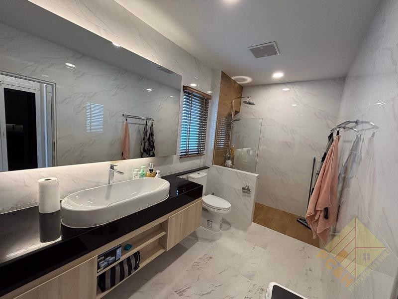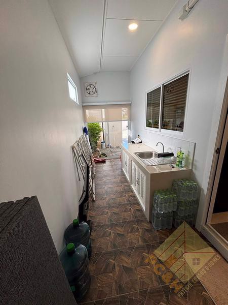 There is a covered parking and a private pool. This house has a land plot of 90 TW (360 sq.m). Garden Ville 6 village has a security guard 24 hours.