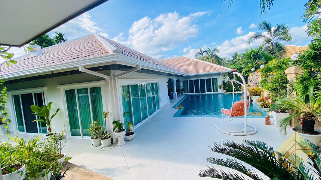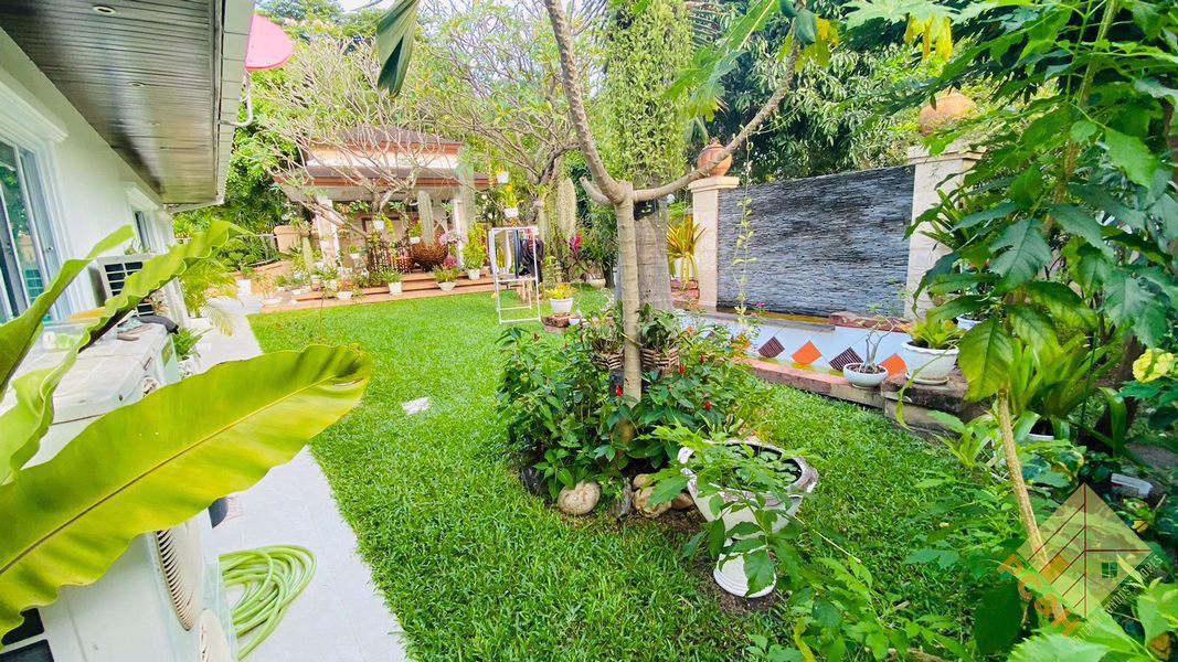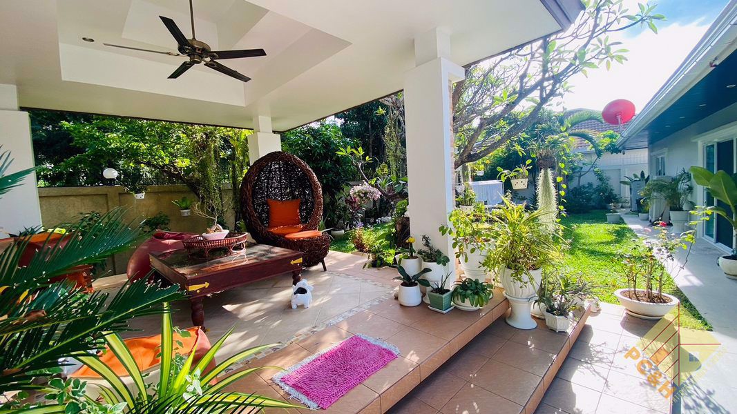 This property sits on a large land plot of 238TW (952sqm) and features a large private pool, a large covered outdoor area next to the pool, a double garage with electric door, a mature and well landscaped garden, a Thai style Sala and an entrance to the communal garden - a feature unique to this particular property.