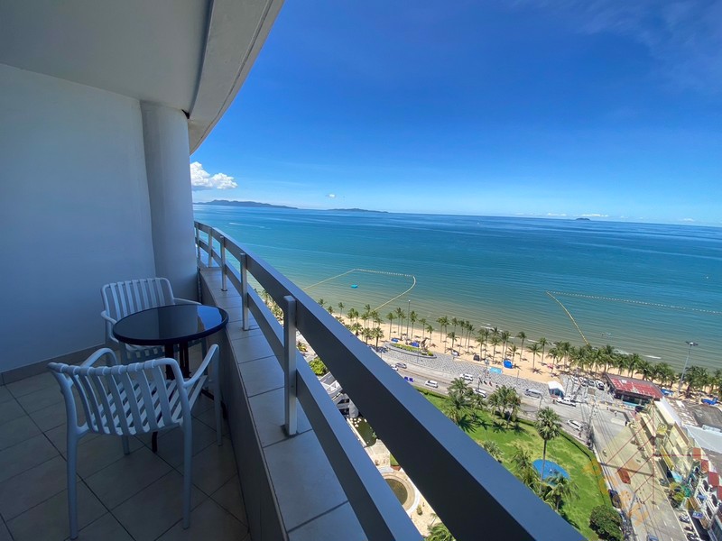 Jomtien Plaza Condotel has been standing since 1990. It is a well managed condo with a total of just 284 units over its 25 floors. The main feature would be its large, elevated communal pool at the front of the development that also offers stunning panoramic beach views. There is also a nice garden.