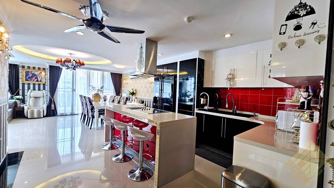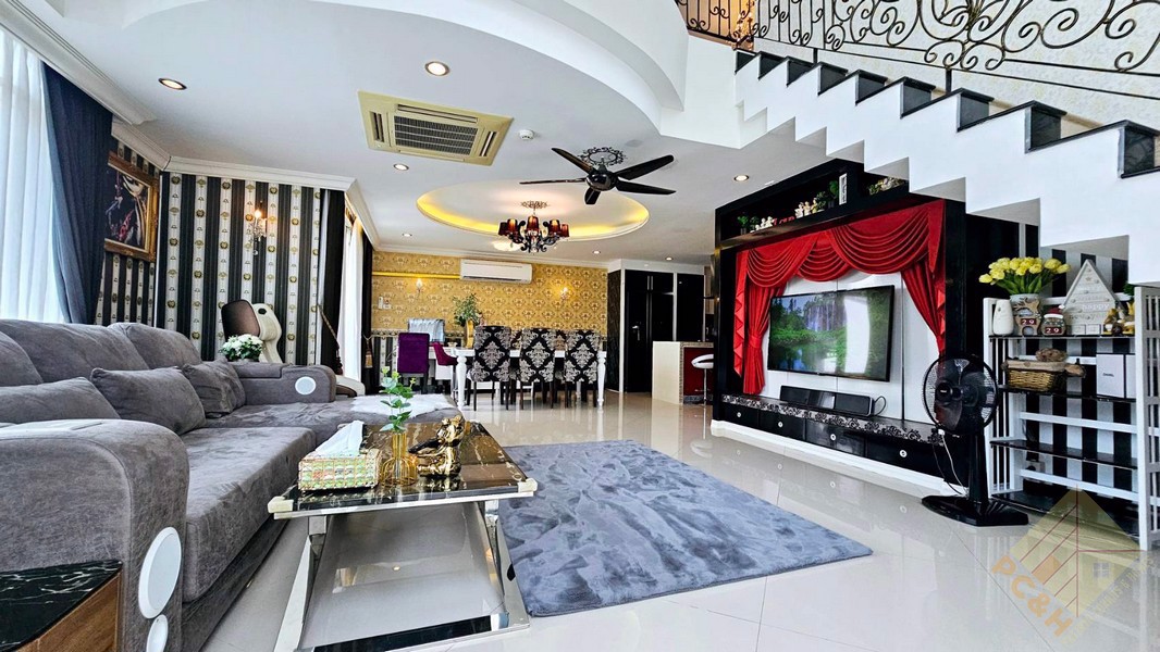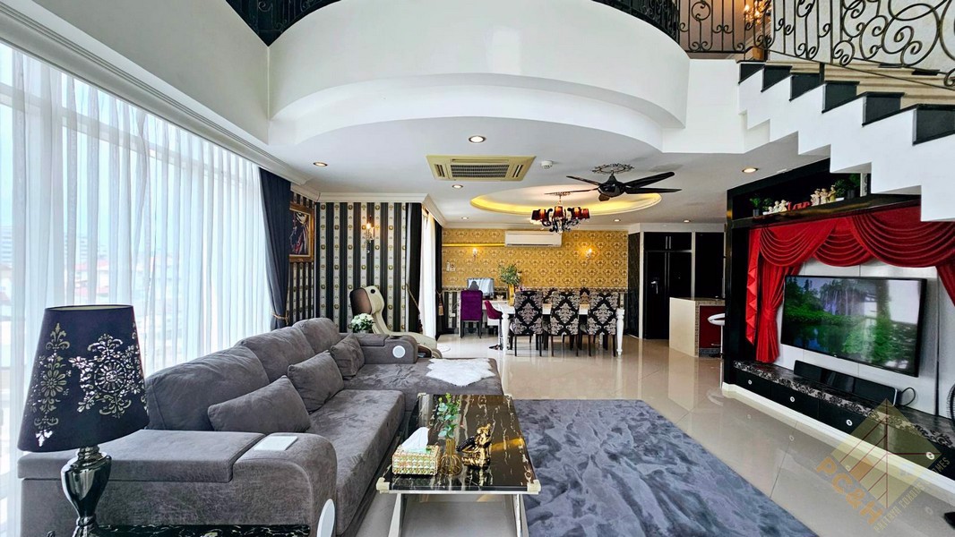 This duplex penthouse for sale in the LK Legend Condominium is located in Central Pattaya. It has a decadent feel, with lavish furnishings and fittings throughout.
