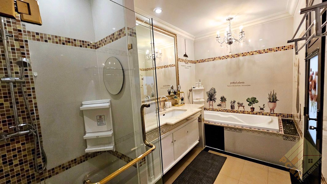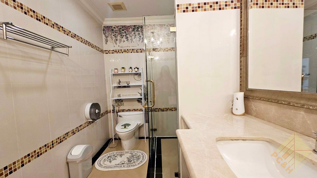 This is a 204 sq.m duplex penthouse located on the 6th and 7th floor of building B. This condo has been fitted and furnished to a high standard and features 1 bedroom on the lower level, with the master bedroom suite being on the upper level. There are many great features throughout this property, including a spacious living area with a double high ceiling, a stunning European Kitchen, and a jacuzzi room featuring a pool table. If you are a fan of decadent interior design, this unit might be perfect for you.