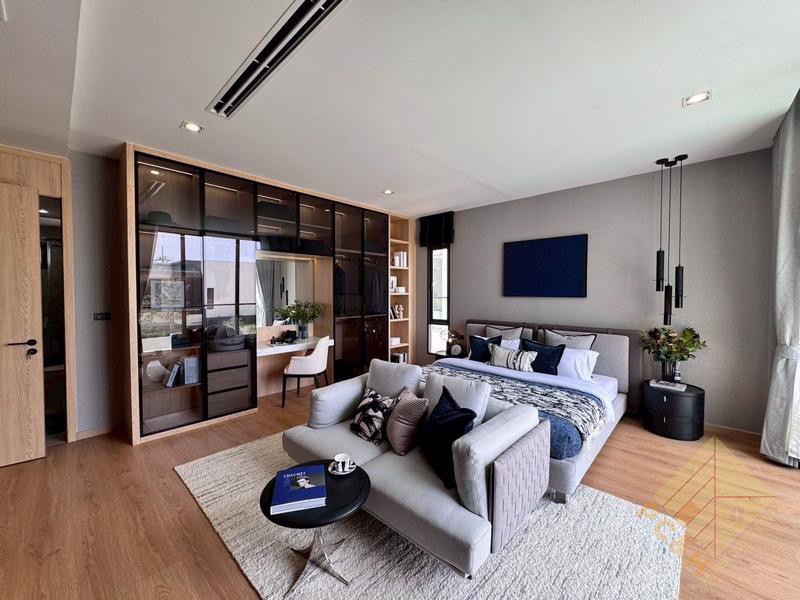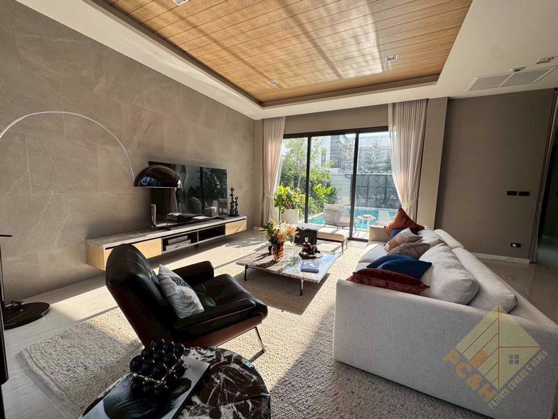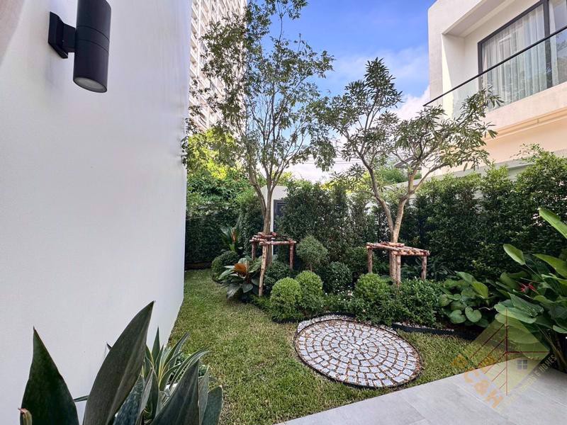 This house sits on a plot of land 99.50 TW (398 sq.m). There is a covered parking space, a private swimming pool and 24-hour security.