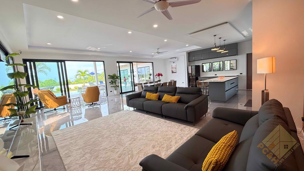 This is a single story with 3 bedrooms, 5 bathrooms in a living area of 380 sq.m, and the house comes fully furnished as you can see in the pictures.