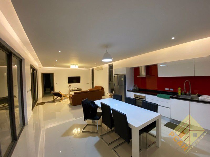 This is a pool villa on the living area of approximately 191 square meters that has 4 bedrooms and 3 bathrooms which comes furnished with a modern interior design.