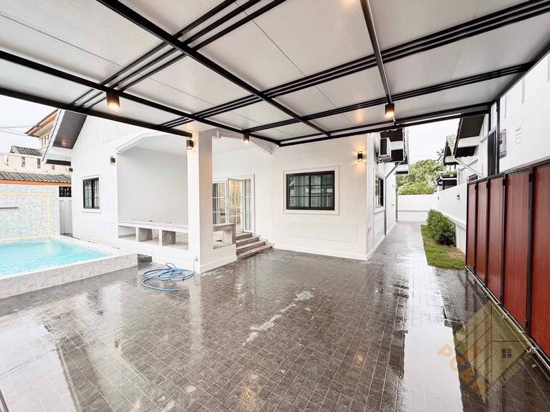 This house is on a 75 TW (300 sq.m) plot of land. It has a private pool. The village has 24-hour security.