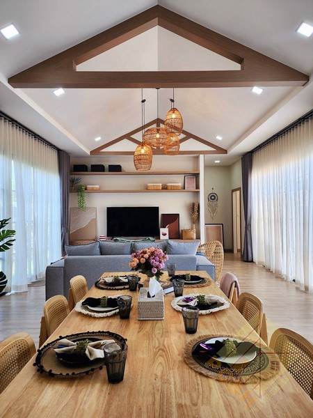 This is a single-story house with 3 bedrooms, 4 bathrooms, and around 250 sq.m of living space and it comes fully furnished as you can see in the pics above.