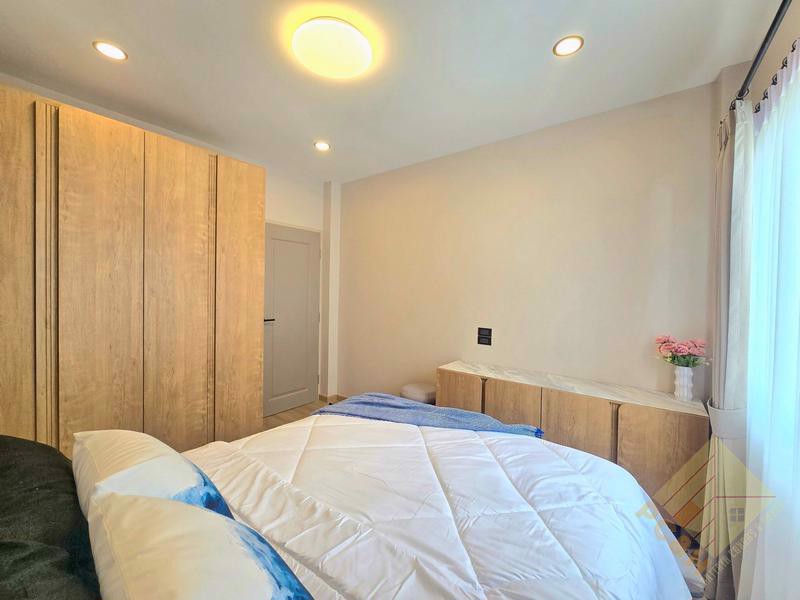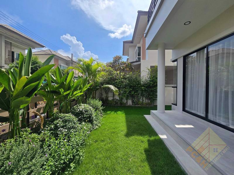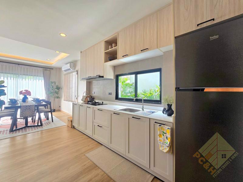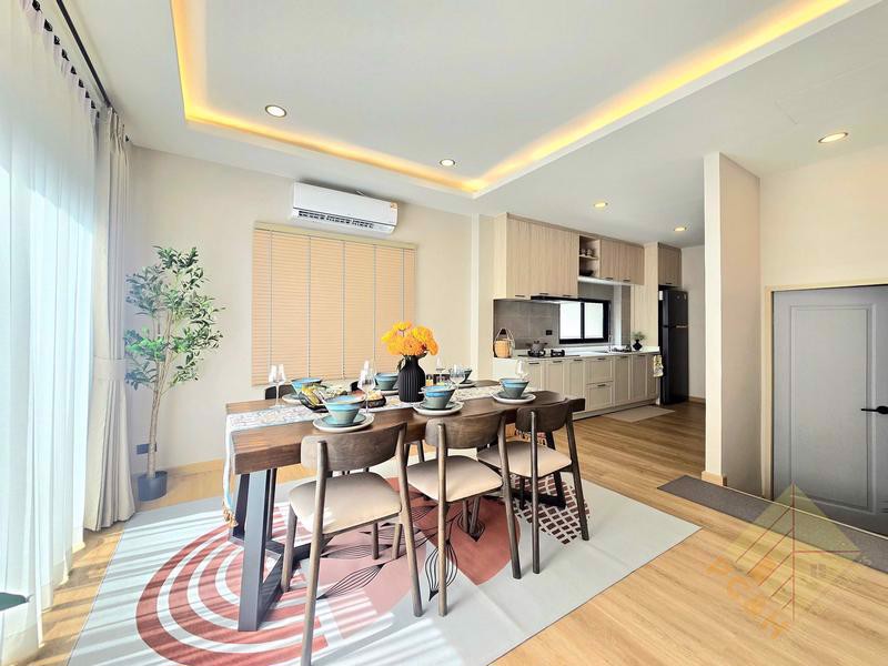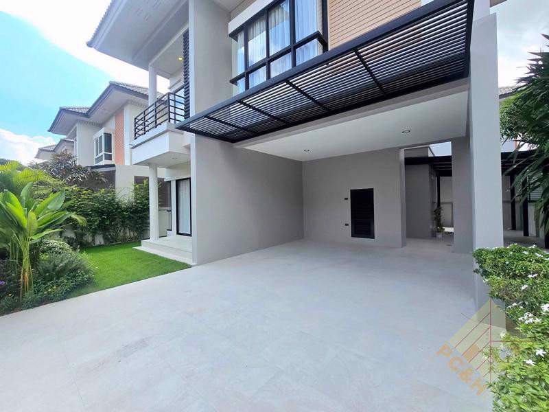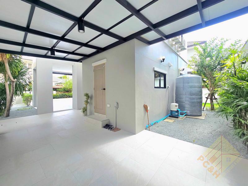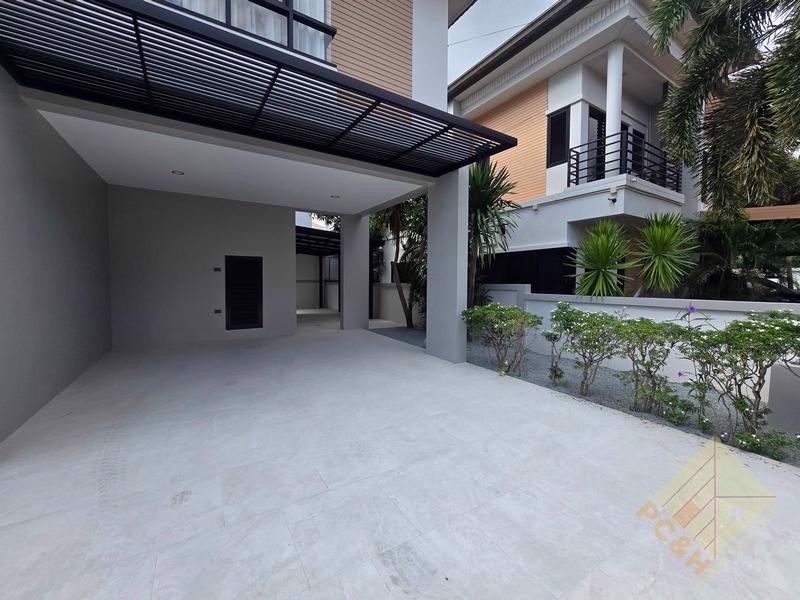 The property sits on a land plot of 56 TW (224 sq.m) covered parking is available, ensuring the safety of your vehicles. and The village features 24-hour security for added safety. There's a large communal swimming pool available for residents.