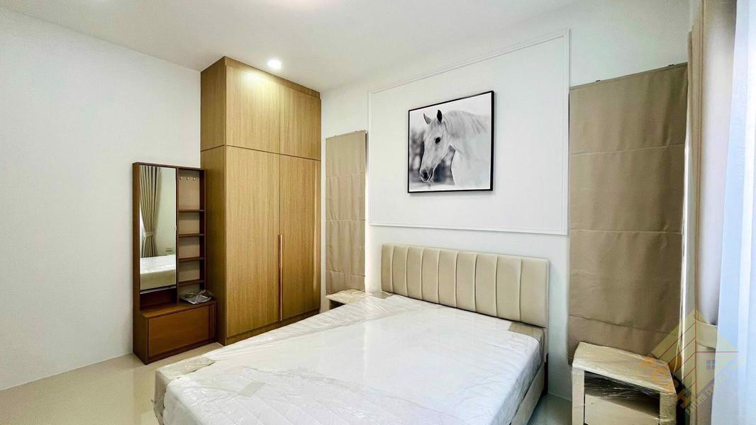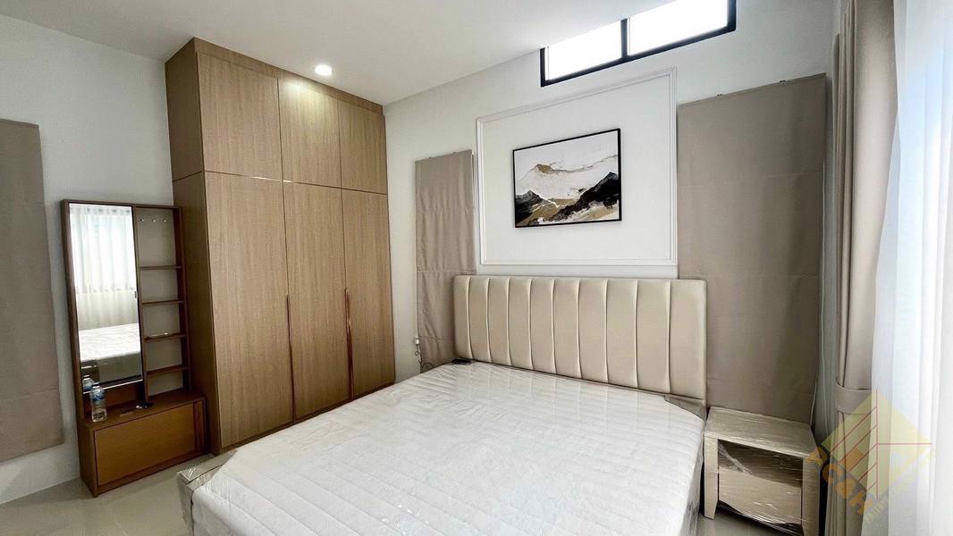 This house has 3 bedrooms, 2 bathroom, and a total usable area of 150 square meters. It features a spacious living room and a built-in European-style kitchen and it comes fully furnished.