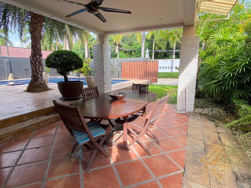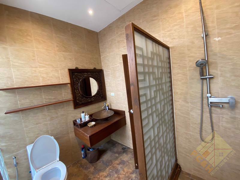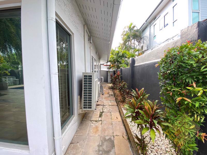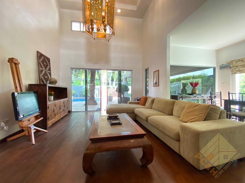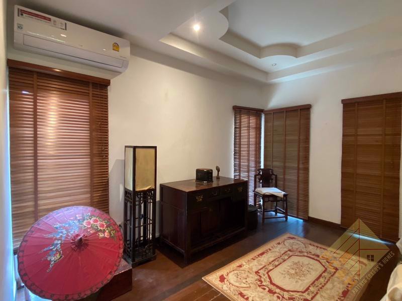 This house comes with a private swimming pool and a parking space. The land size is 100 TW (400 sq.m). The village also features a large communal swimming pool. Conveniently located just 500 meters from the market.