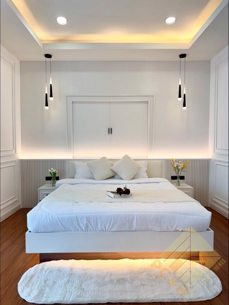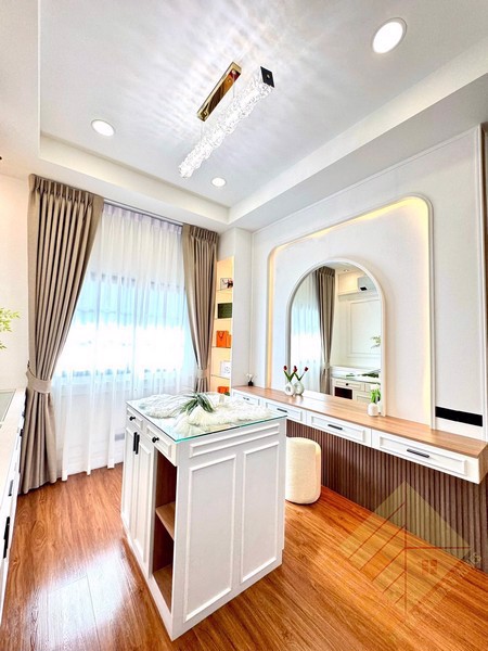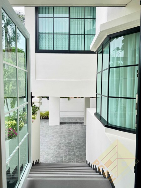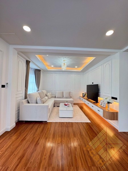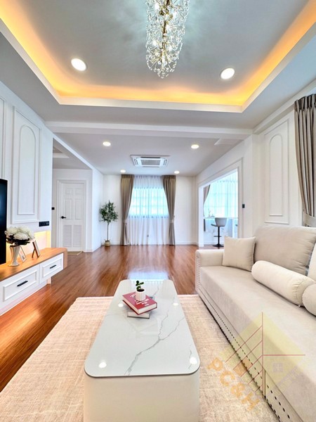 Situated on a 488 square meter (122 TW) land plot, this property features a spacious swimming pool and convenient parking spaces. The village has CCTV surveillance in place, providing residents with enhanced safety and peace of mind.