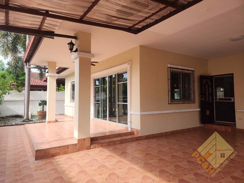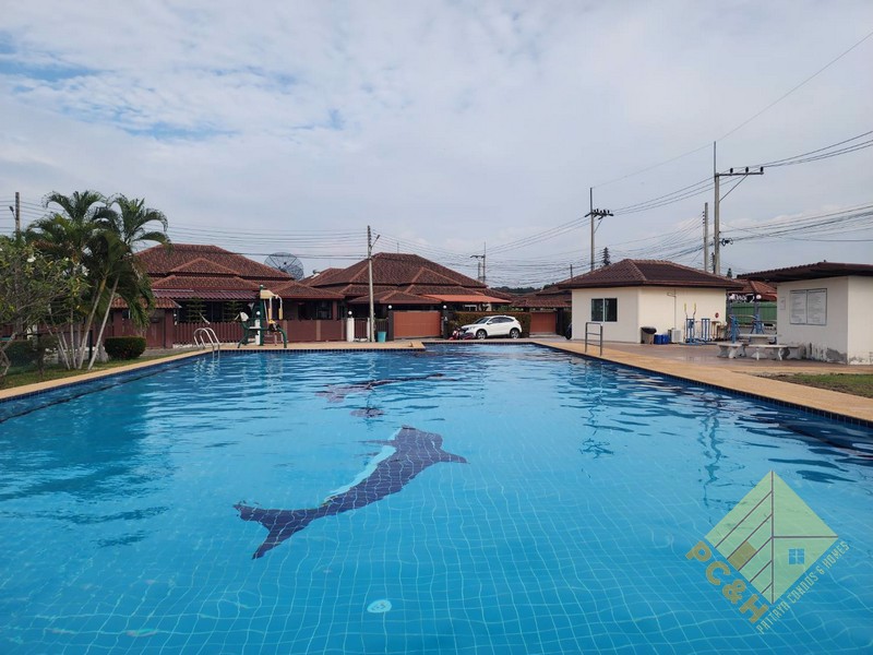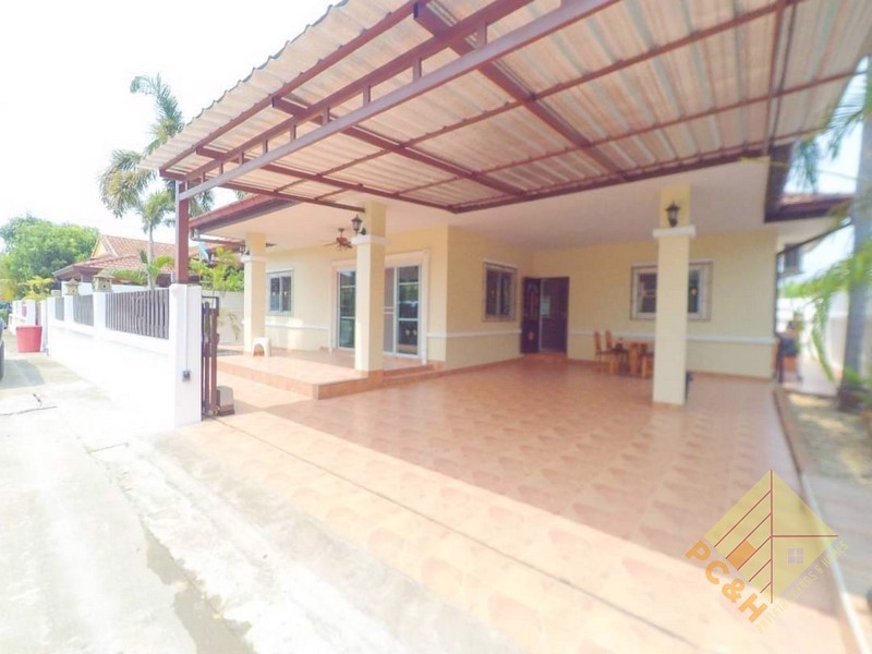 This single storey house has a covered parking, 24 hour security guard and communal swimmimg pool . This house has a land plot of 78 TW ( 312 Sqm).