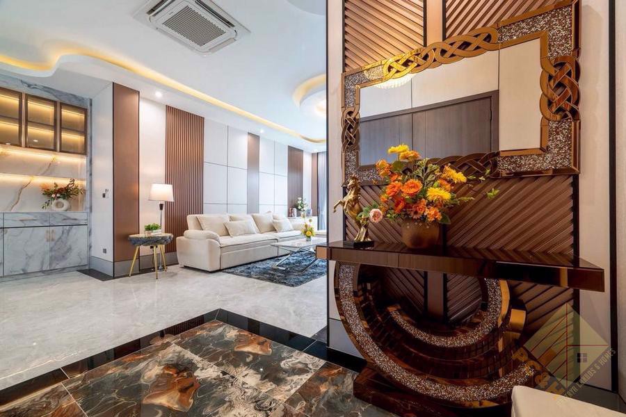 This house has 3 bedrooms, 4 bathrooms, and a total usable area of 200 square meters. It features a spacious living room and a built-in European-style kitchen and it comes fully furnished.