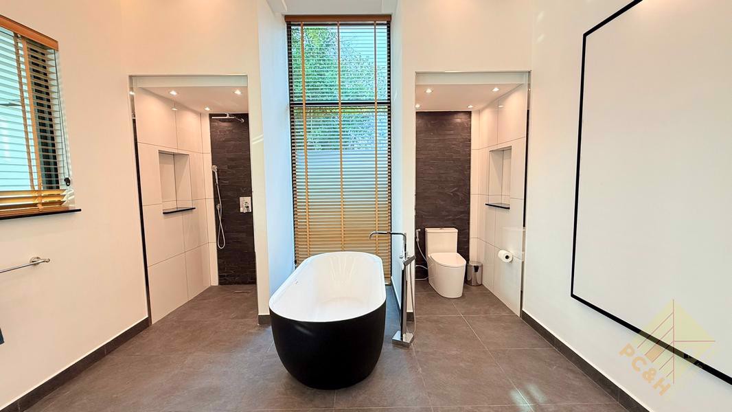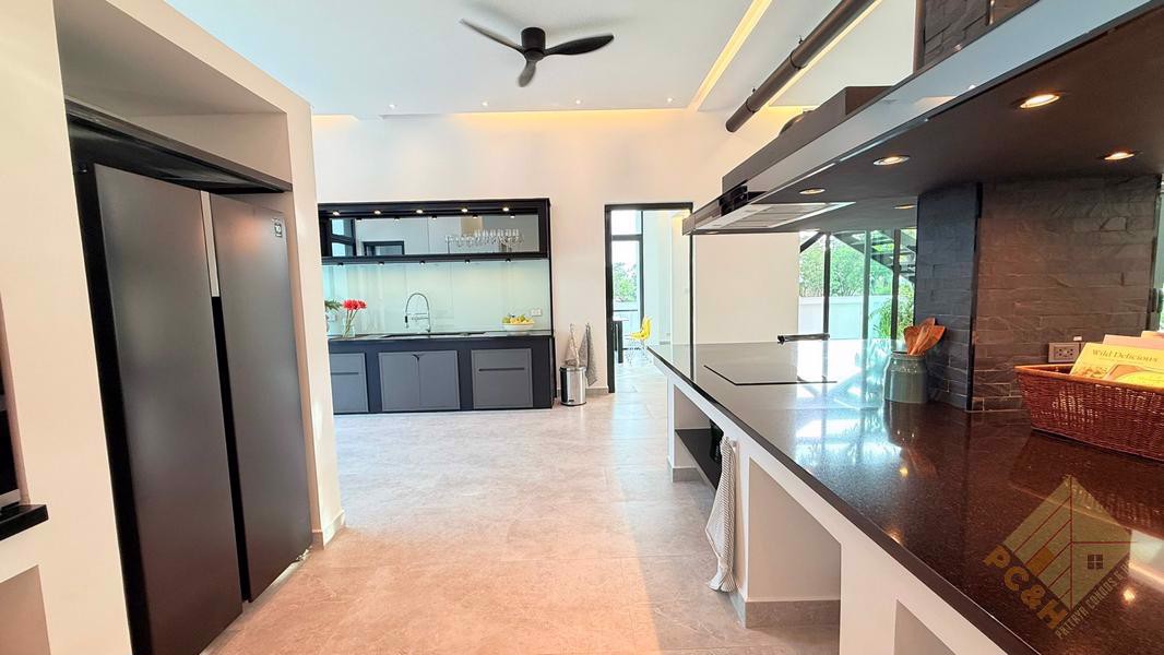 This house is on a land plot of 400 TW (1,600 sq.m) and has a private swimming pool surrounding the pool is a large area which is just perfect for alfresco, all surrounded by a beautifully landscaped, tropical garden.