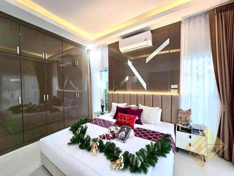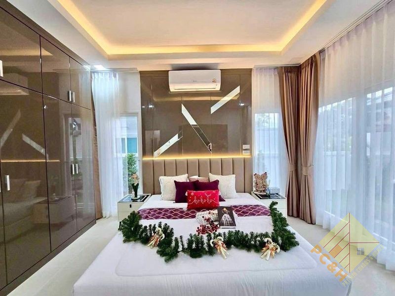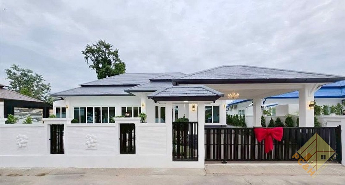 This house sits on a plot of land 124 TW (496 sq.m). There is a covered parking space this village has a communal swimming pool and 24-hour security.