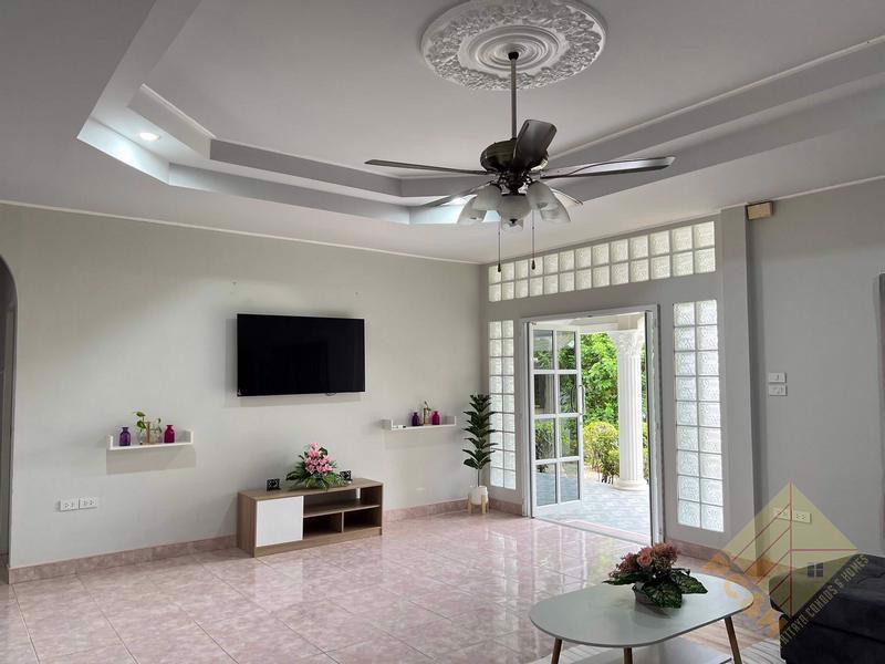 This house is on a land plot of 70 TW (280 sq.m) The house is surrounded by gardens, parking and communal swimming pool.