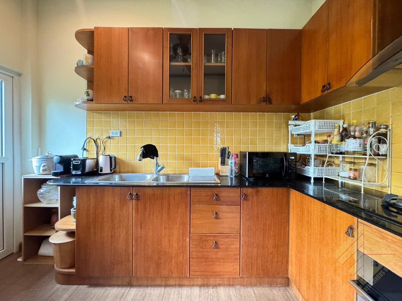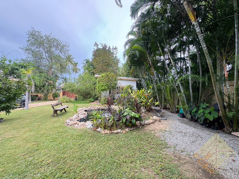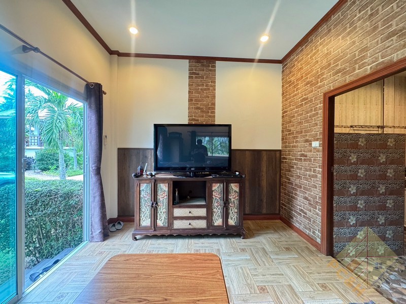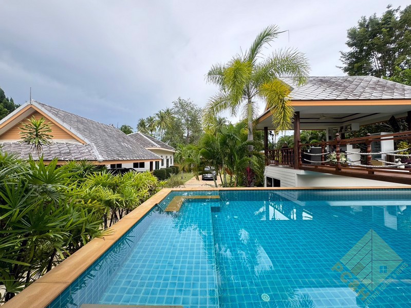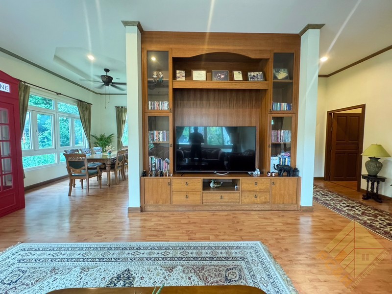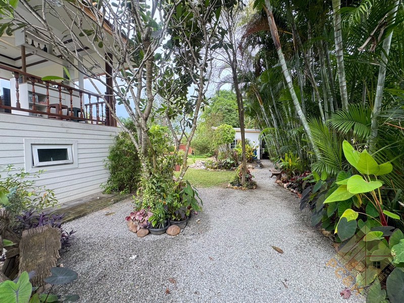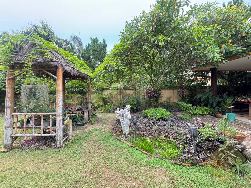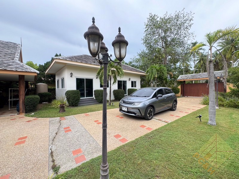 This house sits on a land plot of 390 TW (1,560 sq.m). There is covered parking and this house has a private pool.