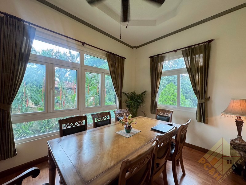 This house has 3 bedrooms, 4 bathrooms, an office room, a guesthouse, and a fitness room with a living area of 400 sq.m and it comes fully furnished.