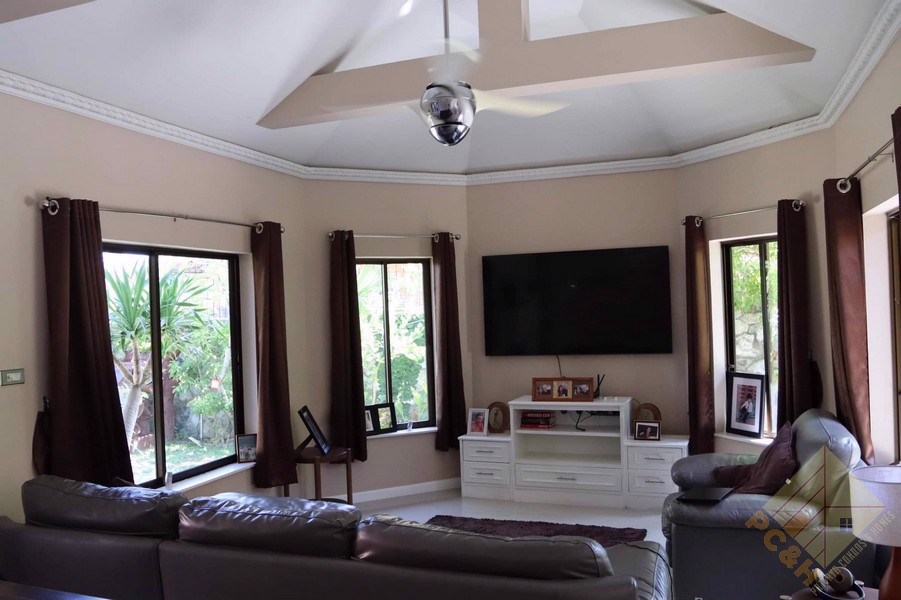 This is a single-story house with 3 bedrooms, 3 bathrooms, and around 280 sq.m of living space and it comes fully furnished as you can see in the pics above.