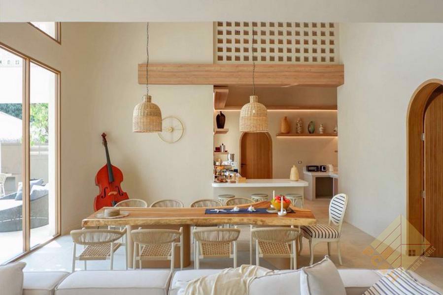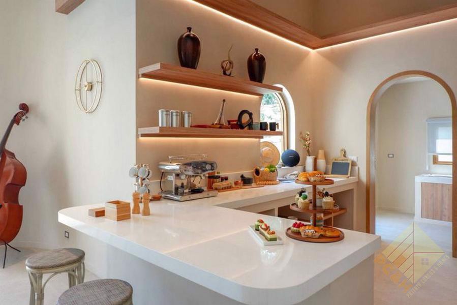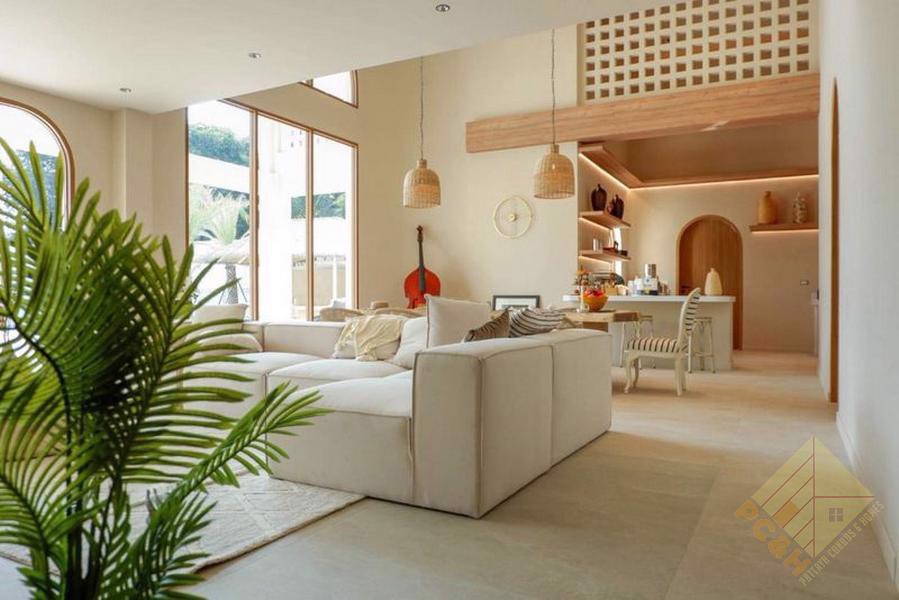This is a 4 bedroom, 5 bathroom property with a very modern feel to it. The kitchen, dining and living room are all in an open-plan configuration. This house has a usable area of 600 sq.m fully furnished as seen in the picture.