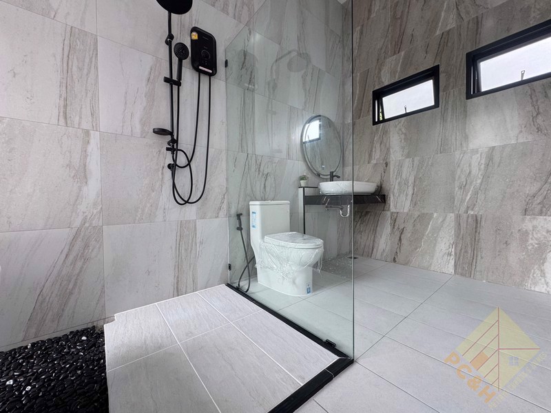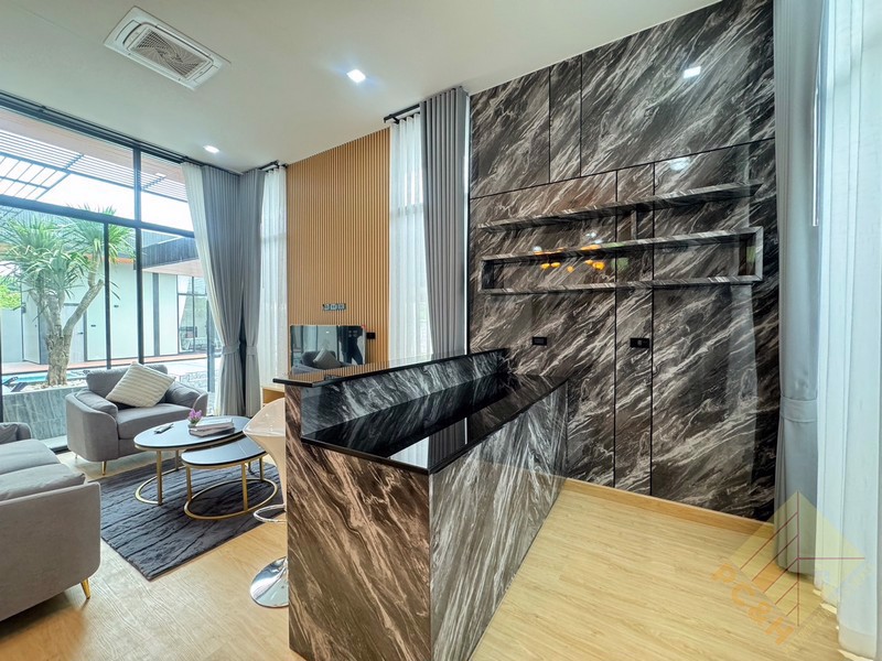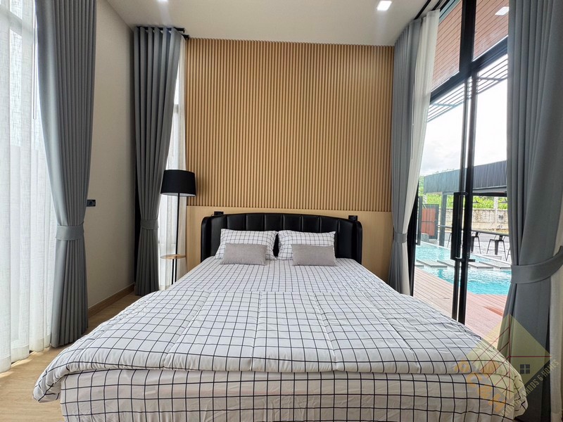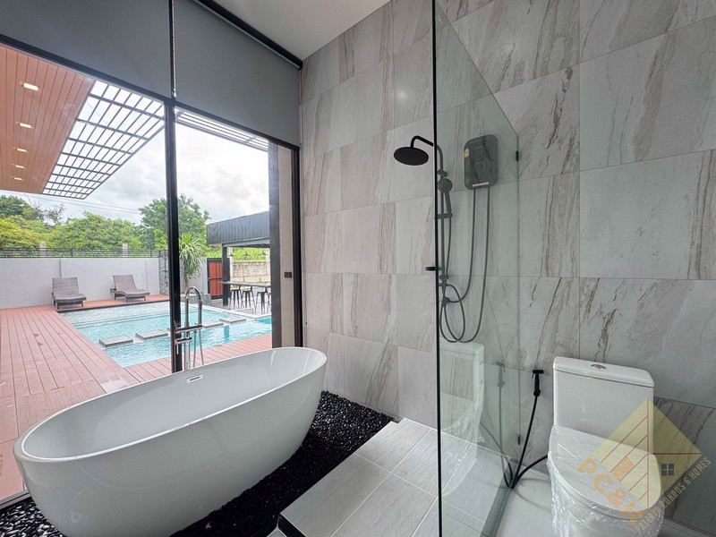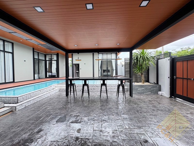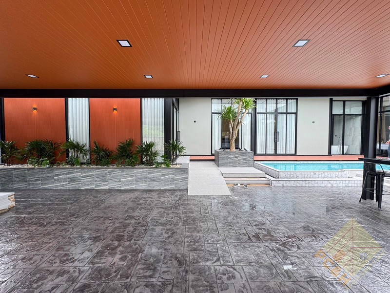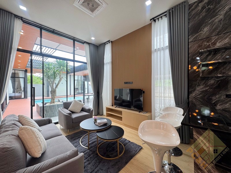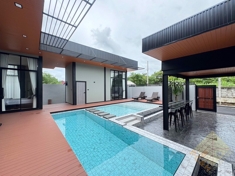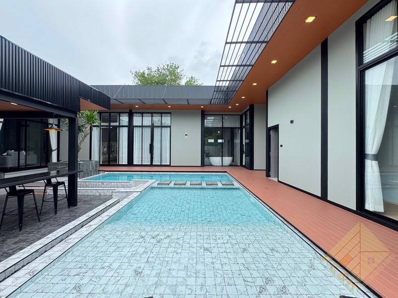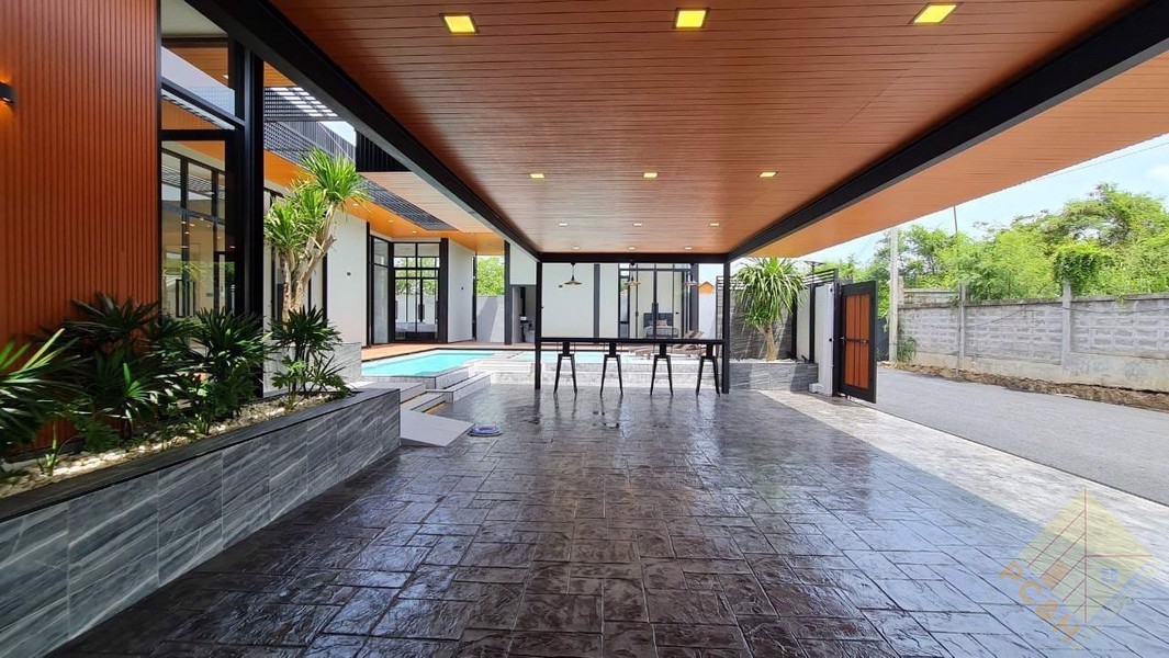This house is on a land plot of 99 TW (396 sq.m) with a private swimming pool. The house is surrounded by gardens and it has parking.