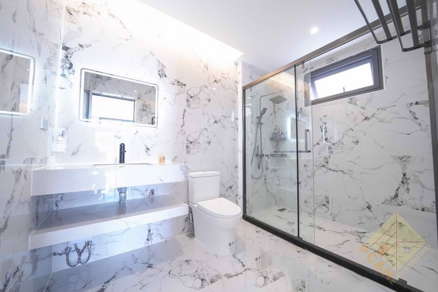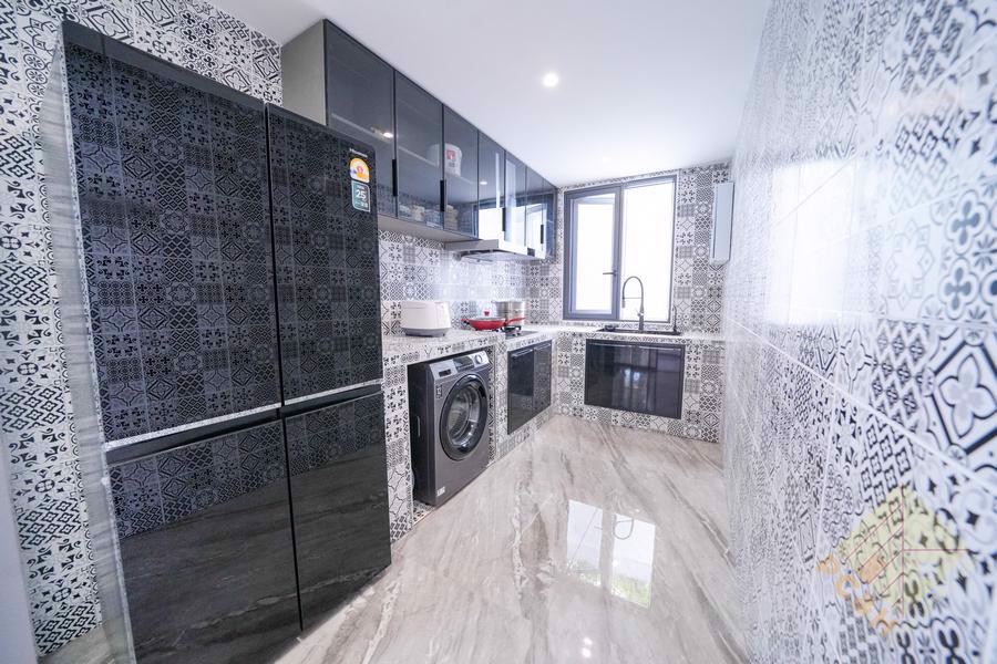 This house offers 4 bedrooms, 5 bathrooms, and a total living area of 220 sq.m. It features a spacious living room, a built-in European kitchen. The home is fully furnished as shown in the photos.