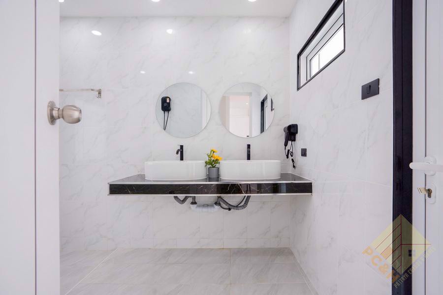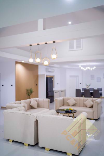 This house offers 4 bedrooms, 5 bathrooms, and a total living area of 400 sq.m. It features a spacious living room, a built-in European kitchen. The home is fully furnished as shown in the photos.