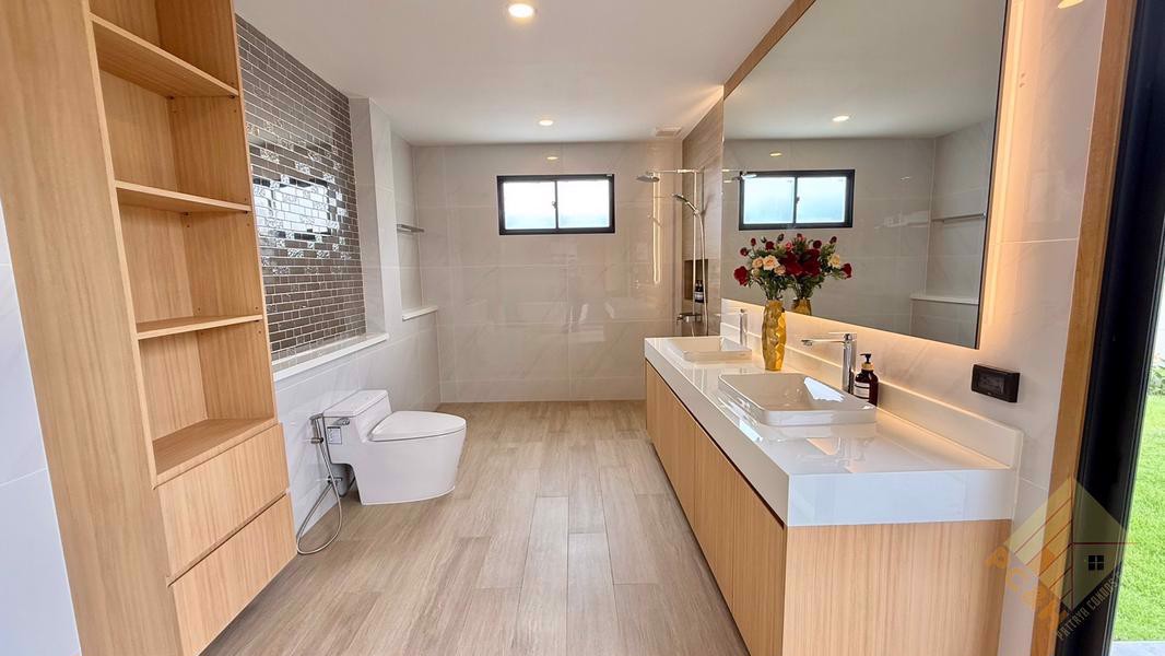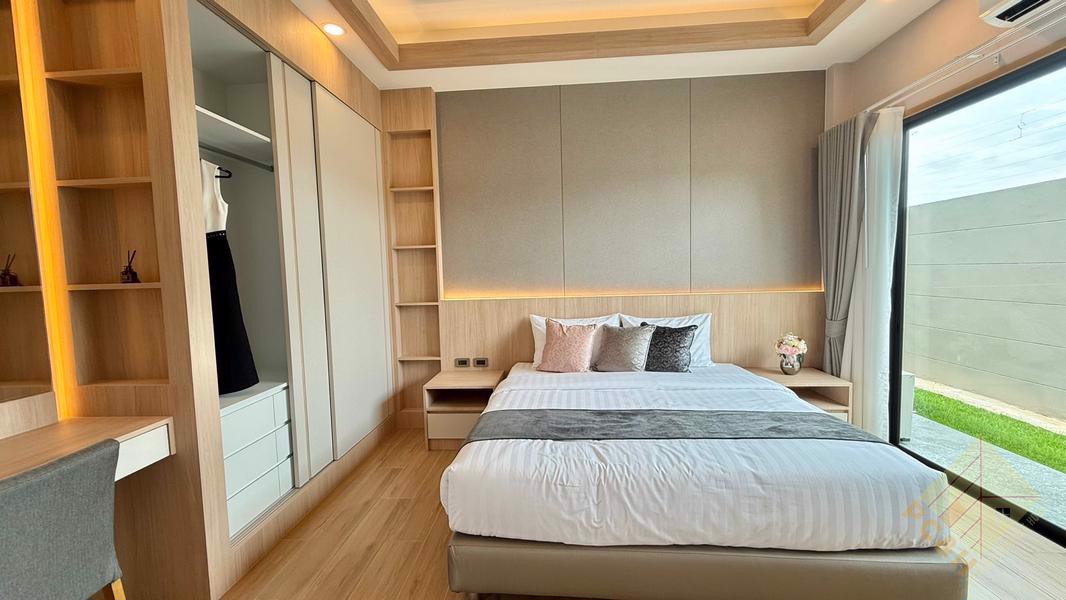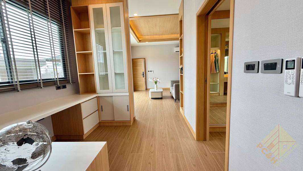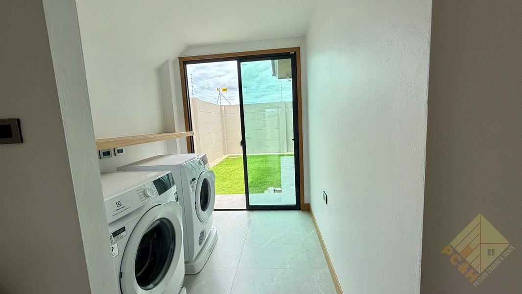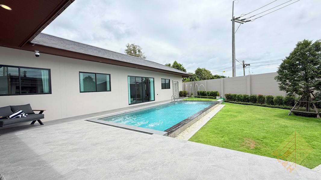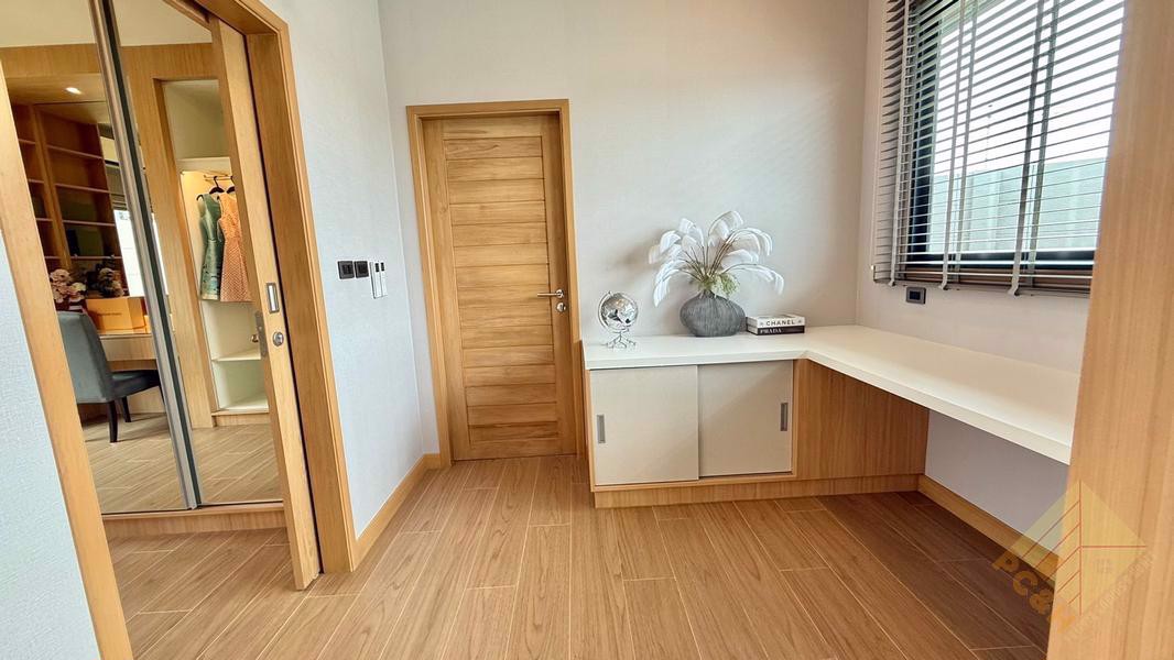 The private pool villa has covered parking, and also a private swimming pool. This house has a land plot of 188.75 TW (755 sq.m). The property is secured with a high-standard, durable boundary wall and an electric fence, ensuring maximum safety and peace of mind for you and your family.