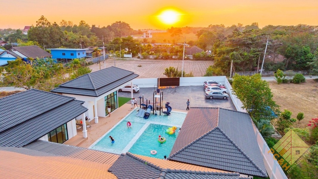 This house is on a land plot of 1 rai 41 TW (1,764 sq.m) and has a private swimming pool and car parking.