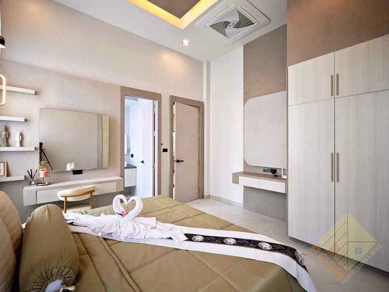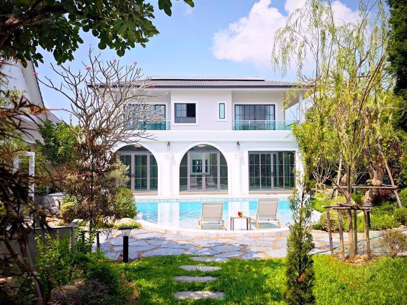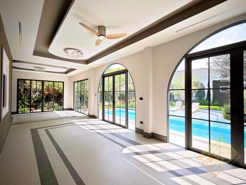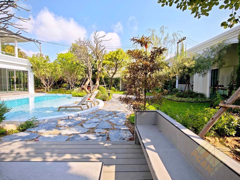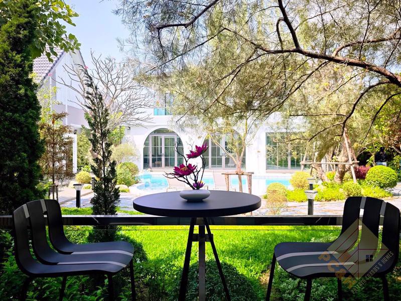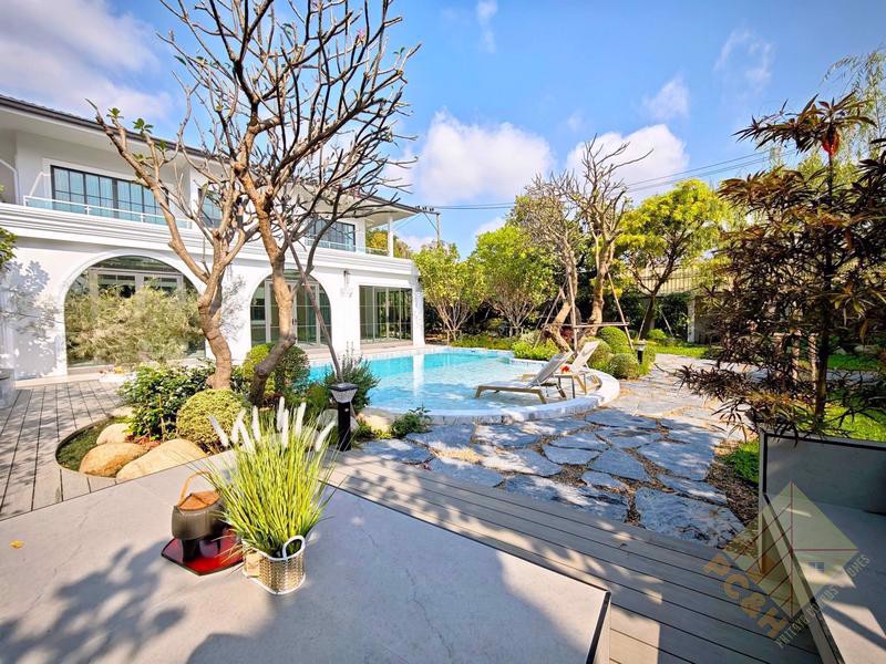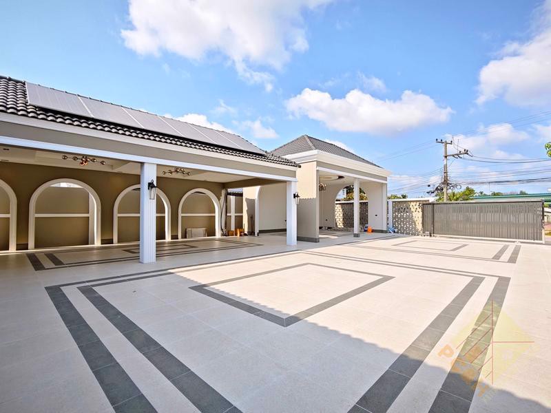 This exceptional residence is set on an expansive 1 rai (1,600 square meters) of land, offering remarkable space and privacy. The property provides parking for more than 10 vehicles and features a private swimming pool, perfect for exclusive relaxation and entertaining.