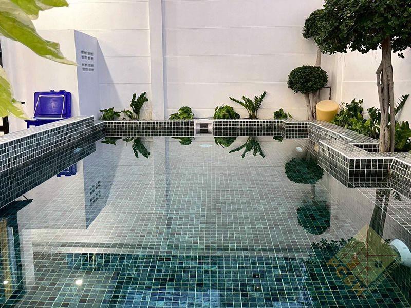 The private pool villa has covered parking, and also a private swimming pool. This house has a land plot of 56 TW (224 sq.m).