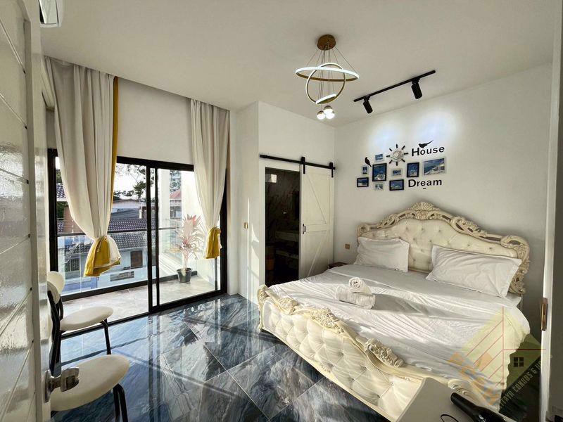 This 3-story house has 9 bedrooms, 10 bathrooms on living space of 400 sq.m and has comes fully furniture as you can see in the pictures.