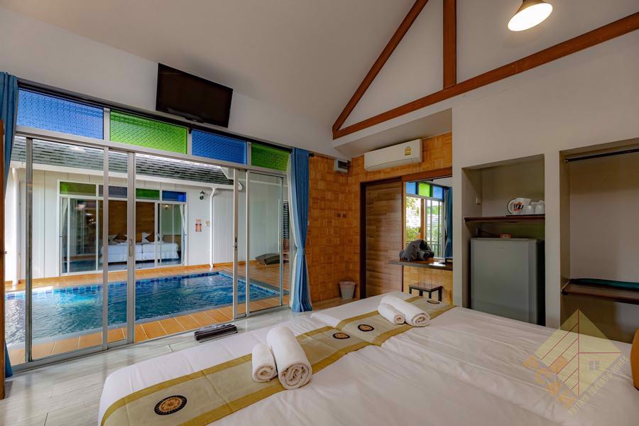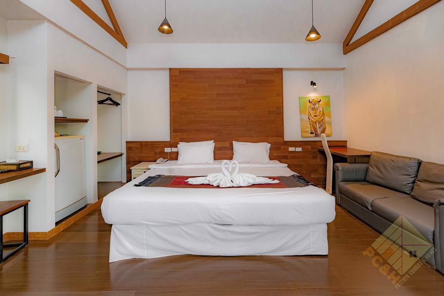 This well-established resort in Jomtien sits on a land plot of 4 rai (approximately 6,400 square meters) and offers a range of accommodation services. The property includes an office building and an on-site coffee shop, providing convenience for both guests and management.