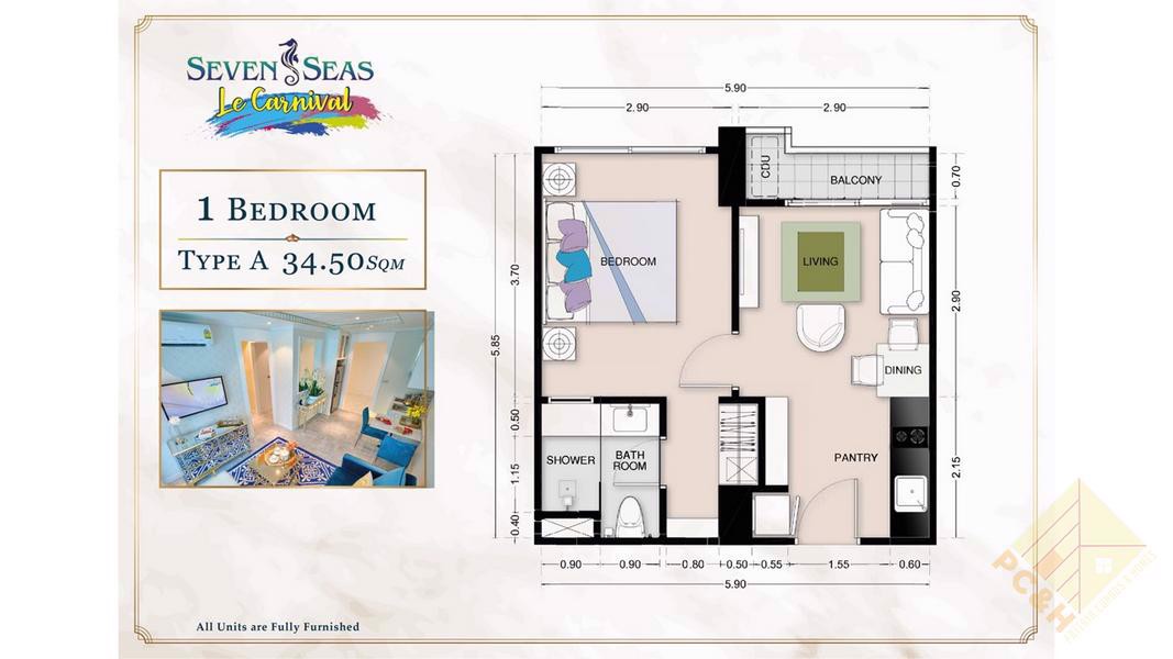 Sevenseas Le Carnival is located just off Soi Watboonkanjanaram. It is less than 2 km from Jomtien Beach and about 1 km from Jomtien 2nd Road. and it takes only a few minutes to Sukhumvit Road.