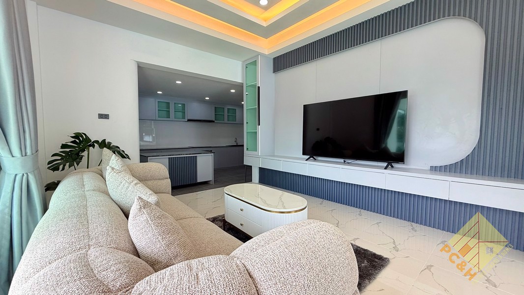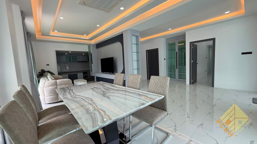 This home offers approximately 250 sq.m. of living space, comprising 3 bedrooms and 4 bathrooms. It is fully furnished with quality furniture and includes a European kitchen with hood and oven, a marble dining set for 6, and a 65-inch Smart TV.