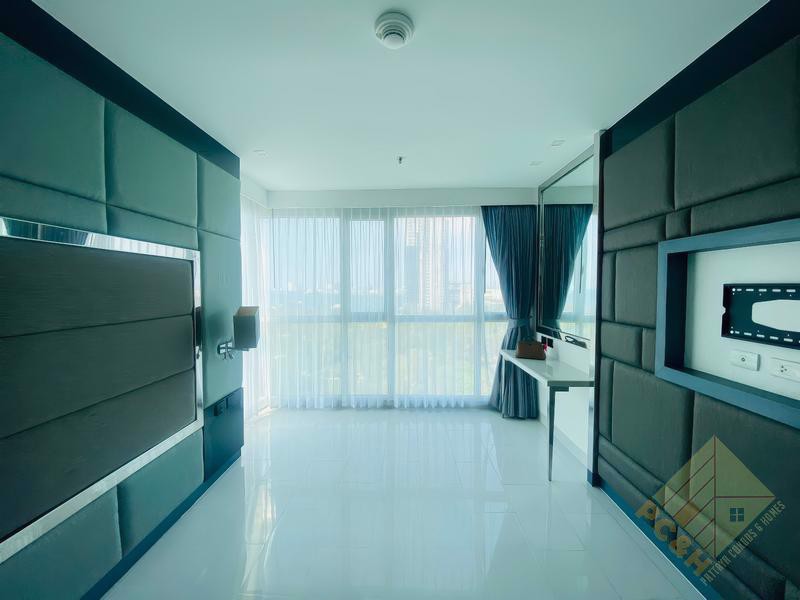 The Sky Residence Pattaya is a modern (finished in 2016), 35 storey, high rise building with the first 15 floors reserved for facilities and hotel guests. It has a large communal pool on the ground floor with a bar, sauna and spa area just next to it. There is also an underground car park that provides ample parking for residents, as well as a rooftop, 9 hole mini golf course, sunbed area, smart lighting and a wicker bar.
