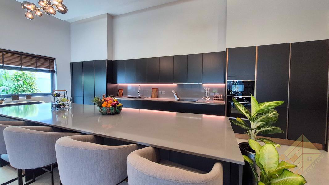 This stunning modern-style single-storey home offers 5 spacious bedrooms and 7 luxurious bathrooms across a generous 620 sq.m of living space. Fully furnished with high-quality built-in furniture, the property also features a fully equipped European-style kitchen and elegant interior design throughout.