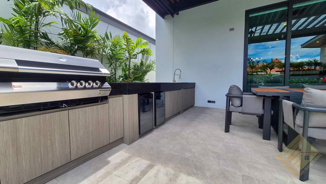 - Expansive outdoor living area, complete with: Covered lounge area, Outdoor dining and BBQ area, Motorized sunblind for comfort and shade