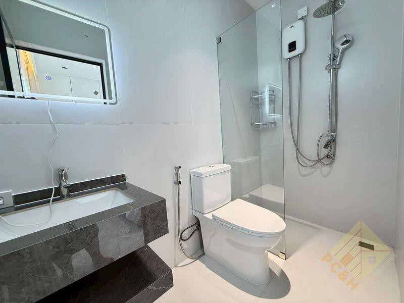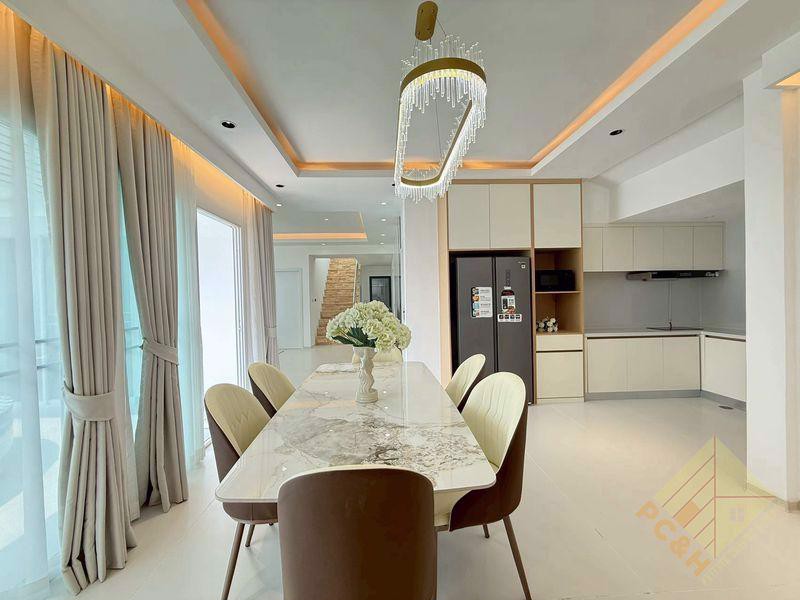 This house has 6 bedrooms and 7 bathrooms, with a total usable area of 190 square meters. It offers a modern European-style kitchen fully equipped with all appliances, and comes fully furnished as shown in the photos above.