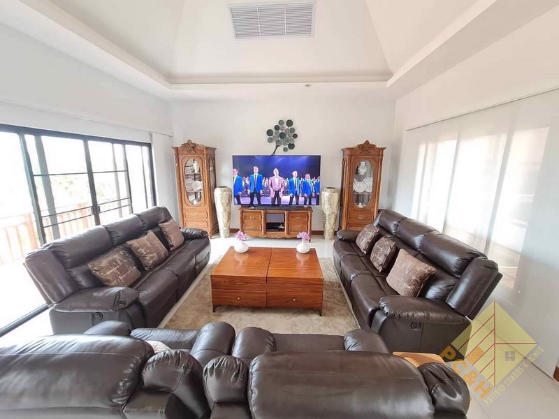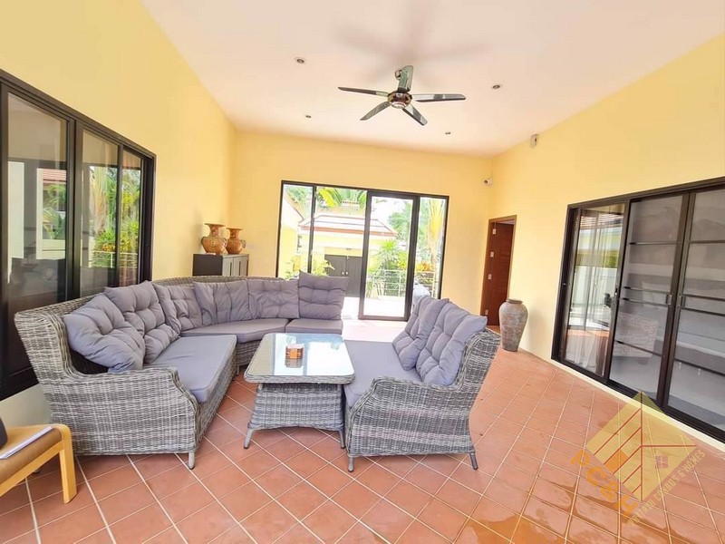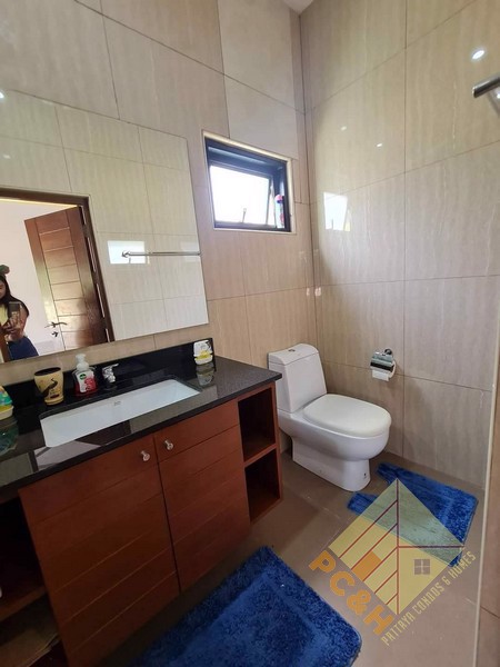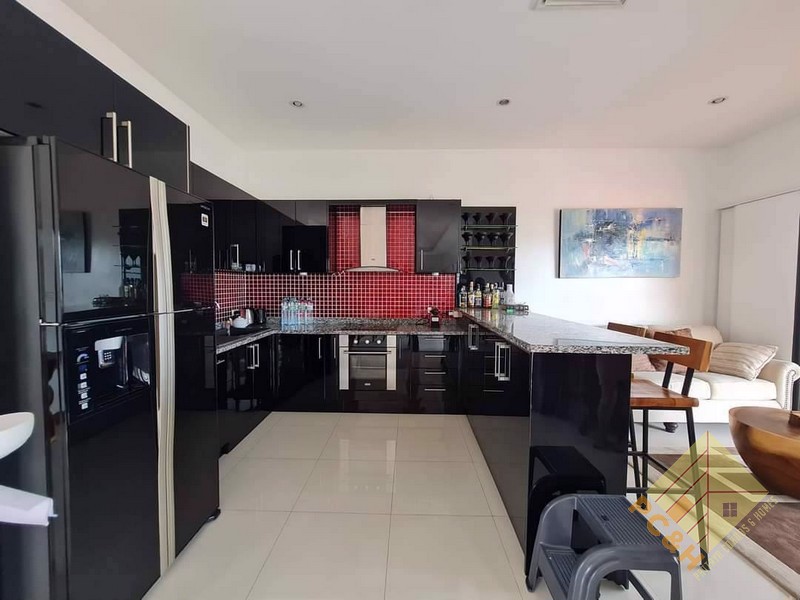 This house has 3 bedrooms, 4 bathrooms, and a total living area of 380 sq.m. It features a spacious living room, a built-in European kitchen. The property is fully furnished with high-quality furniture, as shown in the photos.