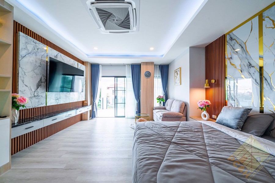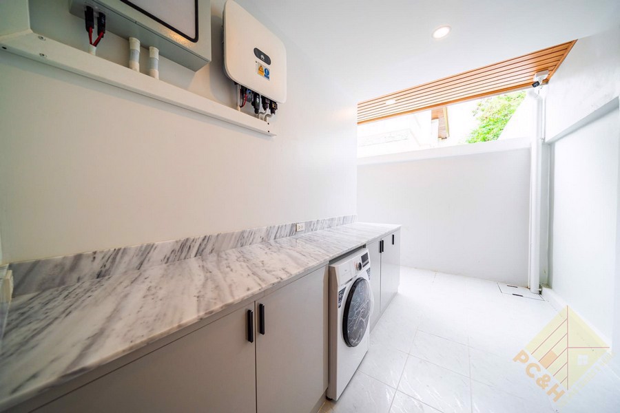 This property is situated on a 150 TW (600 sq.m) plot of land and features a private swimming pool and covered parking. The Imperial Place also offers residents access to a large communal pool for relaxation and recreation purposes. Additionally, the property provides 24-hour security to ensure the safety and peace of mind of its residents.