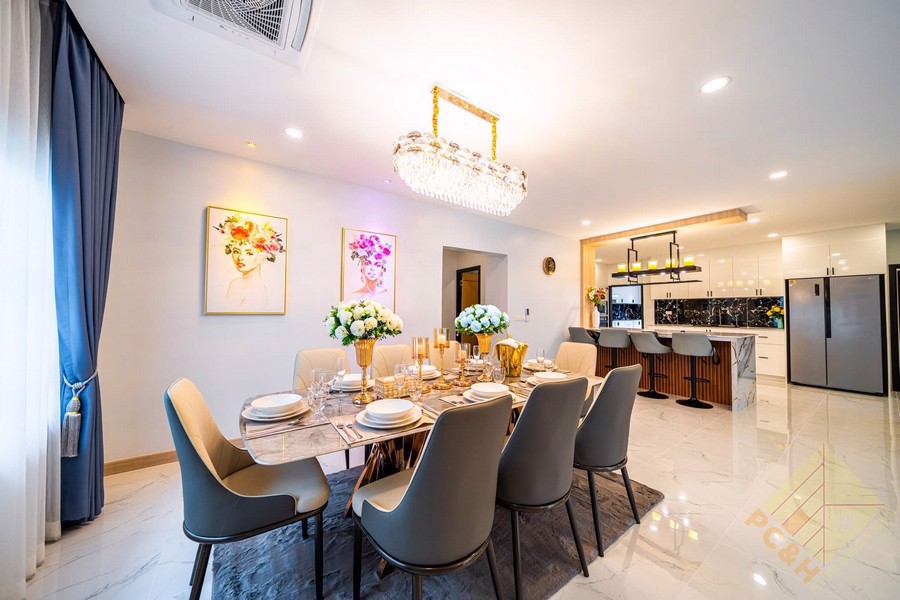 This is a 2 story house with 6 bedrooms, 9 bathrooms, and around 480 sq.m of living space and it comes fully furnished as you can see in the pics above.