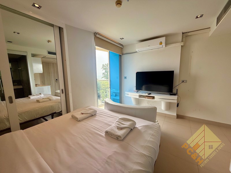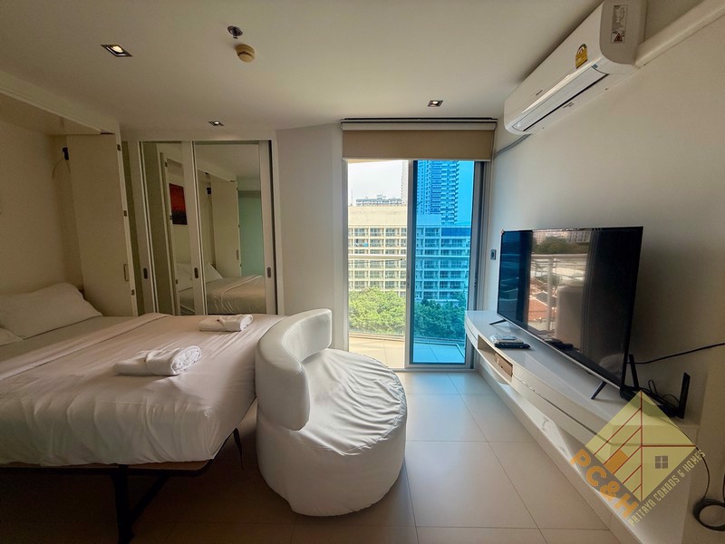 This condo has 24.66 sq.m unit on the 7th floor that has sea views. This is a studio, 1 bathroom condo and it comes fully furnished as you can see in the pics above.