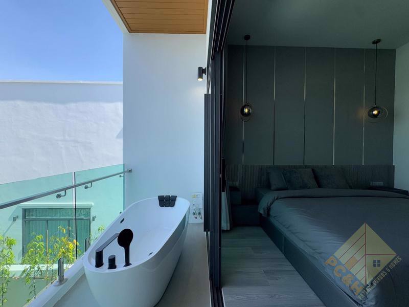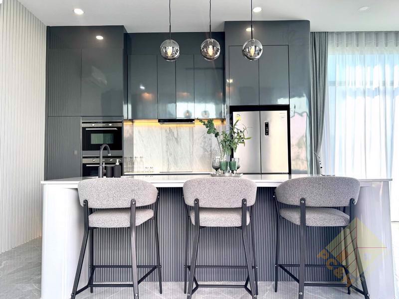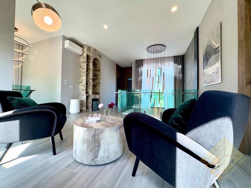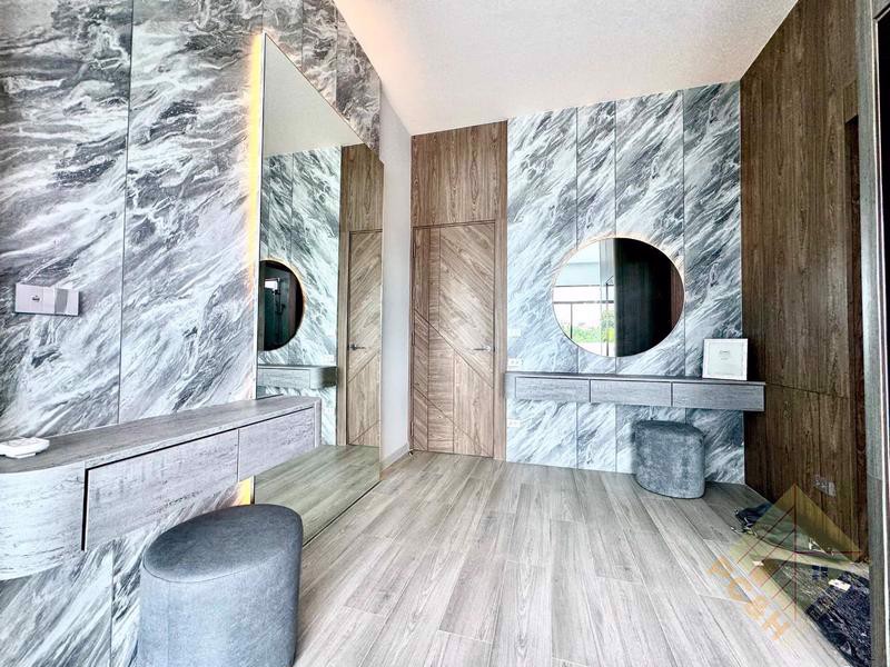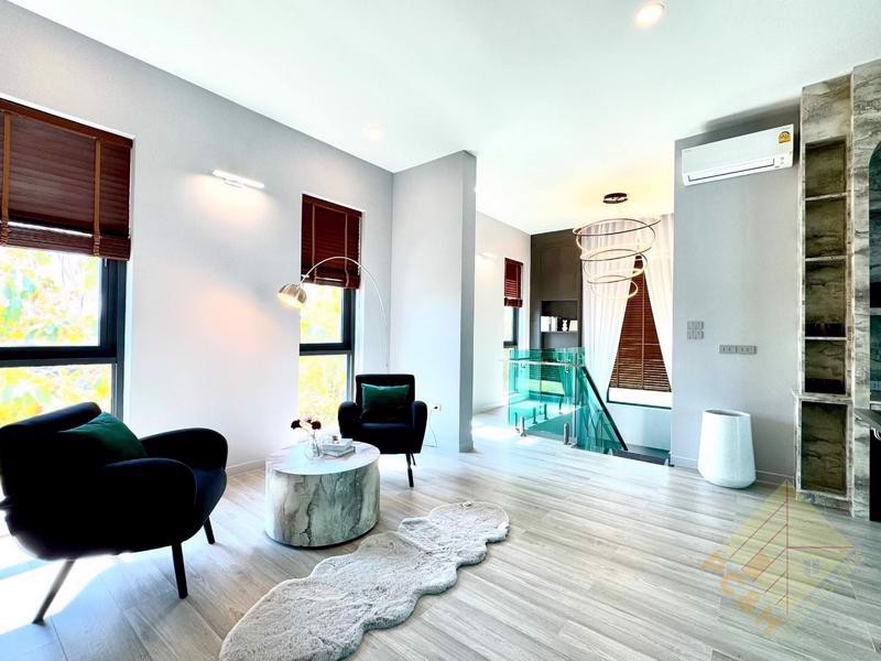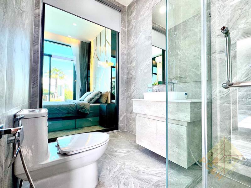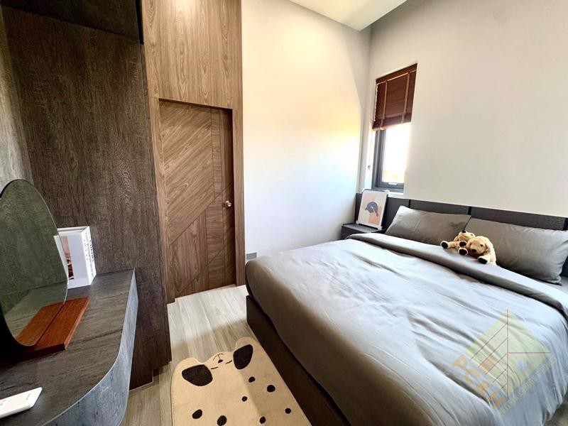 This house has a private swimming pool, including an open-air lounge area, fitted with an outdoor kitchen and BBQ, making it ideal for outdoor parties and it has a garden surrounding the house and a digital door lock. The total land size is 132 TW (528 sq.m).