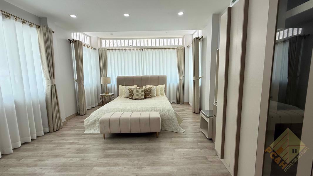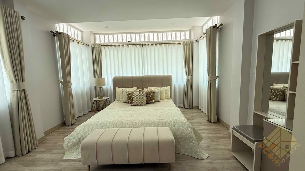This is a 2-story house with 4 bedrooms, 4 bathrooms, and around 200 sq.m of living space and it comes Built-in furnished as you can see in the pics above.
