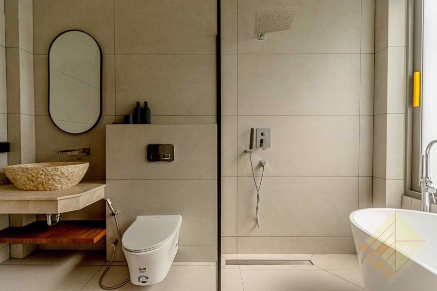 This house has 4 bedrooms, 5 bathrooms, and a total usable area of 410.50 square meters. It features a spacious living room and a built-in European-style kitchen and it comes fully furnished.